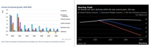 2) Demand for oil in petrochemicals, aviation, and shipping will likely continue to increase until at least 2050, but this increase in demand will be more than offset by the lower oil demand for transport as the growth in electric vehicles continues to rise.10